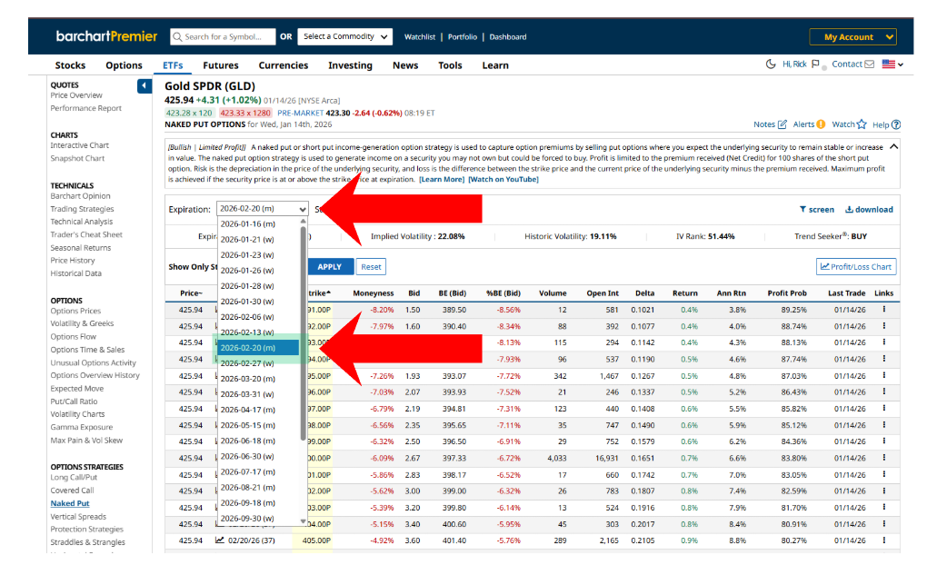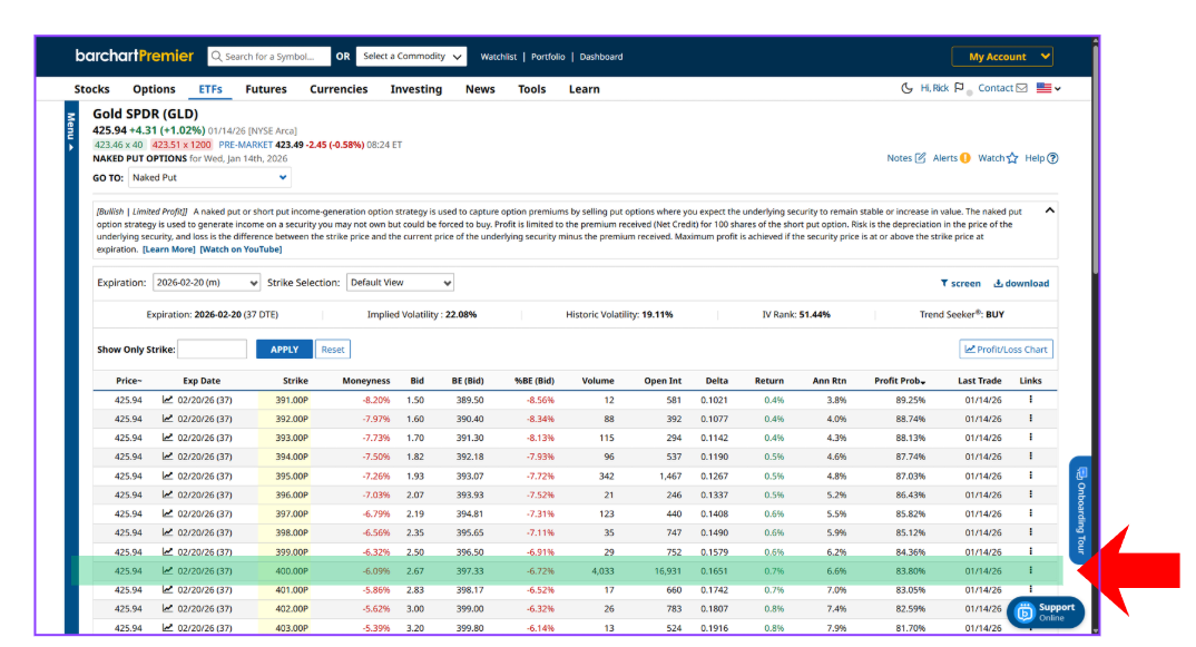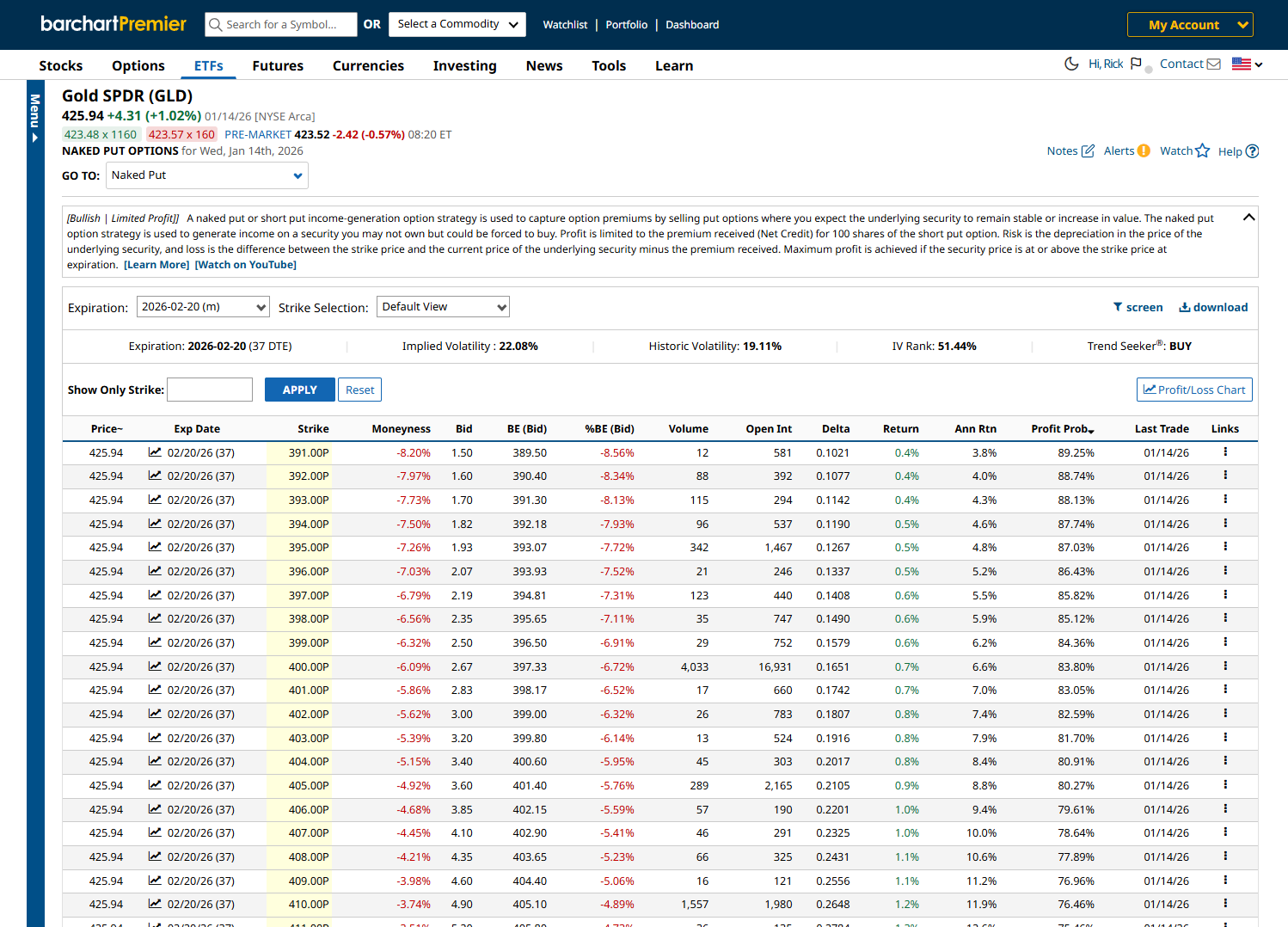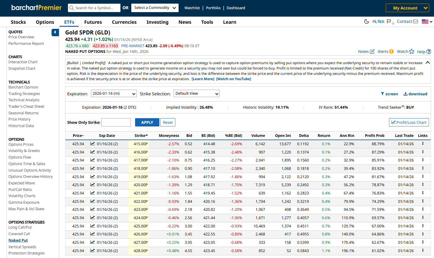 But overall, if you’re bullish on gold but don’t want to chase the price at the top, you can sell cash-secured puts and get paid income for your patience.