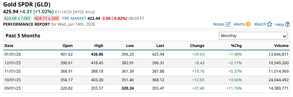 Precious metals started 2026 with a bang. Gold SPDR (GLD) is up 7% since the first trading day of the year, compared to the S&P 500’s relatively flat performance. From its ramping volume, many investors are scrambling to buy the leading precious metals ETF - and it’s not even the end of the month.