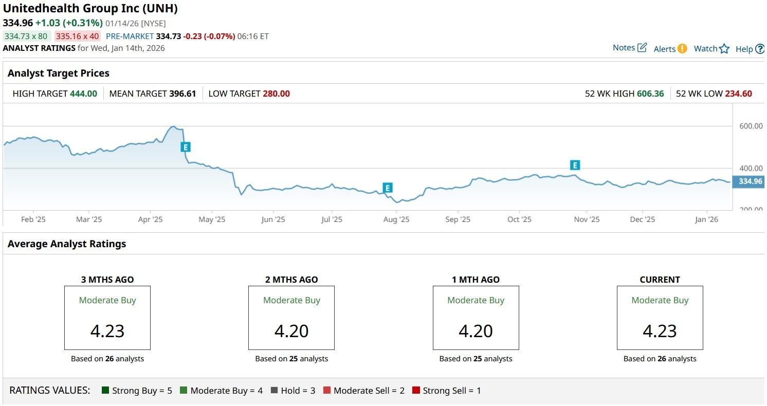 The consensus rating on UnitedHealth stock remains at “Moderate Buy” with the mean target of about $397 indicating potential upside of nearly 20% from here.