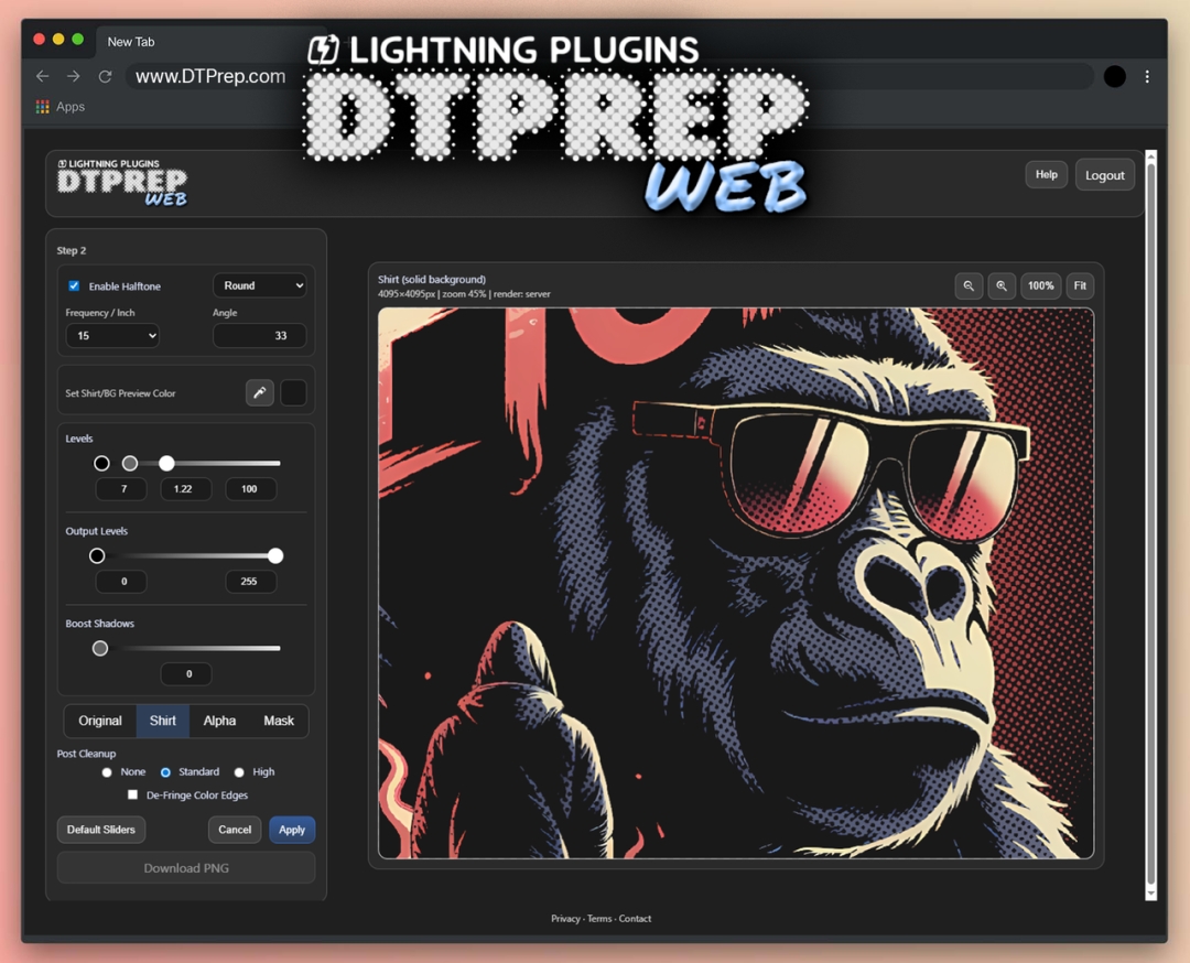 DTPrep, the popular artwork preparation tool known for eliminating white haze and simplifying DTF and DTG workflows, has officially launched a web-based version of DTPrep, making professional halftone preparation accessible to designers who do not use Adobe Photoshop.