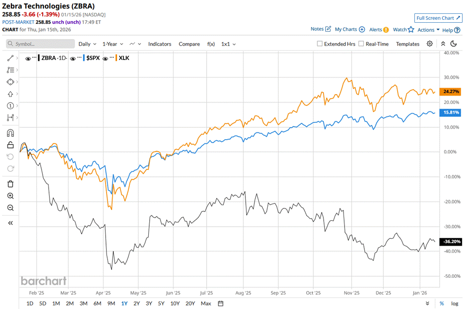 Shares of Zebra Technologies have declined 35.3% over the past 52 weeks, underperforming the S&P 500 Index’s ($SPX) 16.7% rise and the State Street Technology Select Sector SPDR ETF’s (XLK) 25.2% return during the same time frame.