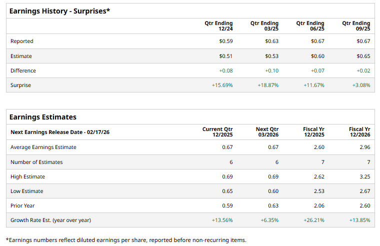 Arista Networks, Inc. (ANET), headquartered in Santa Clara, California, develops, markets, and sells data-driven, client-to-cloud networking solutions for data center, campus, and routing environments. Valued at $183.4 billion by market cap, the leading tech company offers Ethernet switches, pass-through cards, transceivers, and enhanced operating systems. It also provides host adapter solutions and networking services. The cloud networking giant is expected to announce its fiscal fourth-quarter earnings on Thursday, Feb. 12, after the market closes.