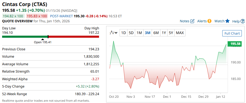 Cintas Corp is a leading provider of corporate identity, uniform, and facility services. It offers sanitary and safety products across different industries. For example, its Garment Dispensing Solution gives customers a more efficient, technology-driven way to manage apparel and reduce losses, which is a quiet growth driver for the business.