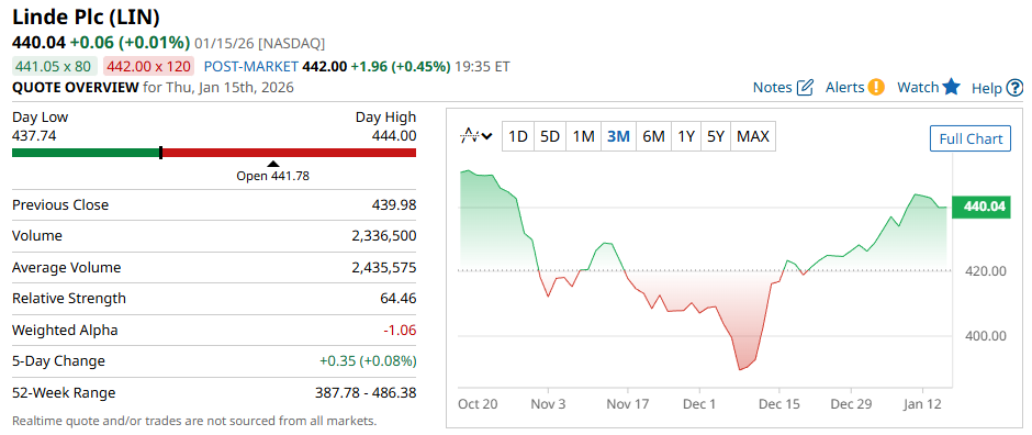 The third and last Dividend Aristocrat on my list is Linde Plc, a global leader specializing in chemicals and engineering. Its U.S. space sector investments highlight how Linde supplies critical industrial gases for specific industries, while also focusing on sustainability.