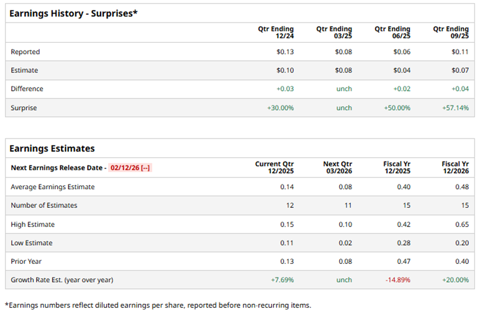 The New York-based company is slated to announce its fiscal Q4 2025 results soon. Ahead of this event, analysts project DDOG to report a profit of $0.14 per share, a 7.7% rise from $0.13 per share in the year-ago quarter. It has exceeded or met Wall Street's earnings expectations in the past four quarters.
