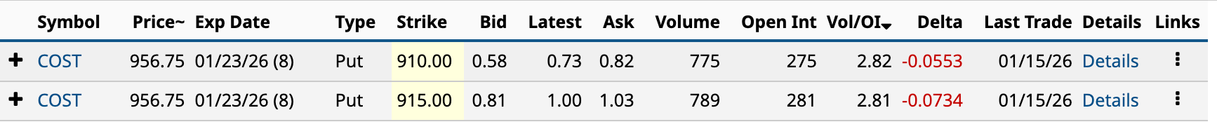 Yesterday, Costco had two unusually active put options.