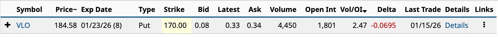 Yesterday, Valero had one unusually active put shown below.