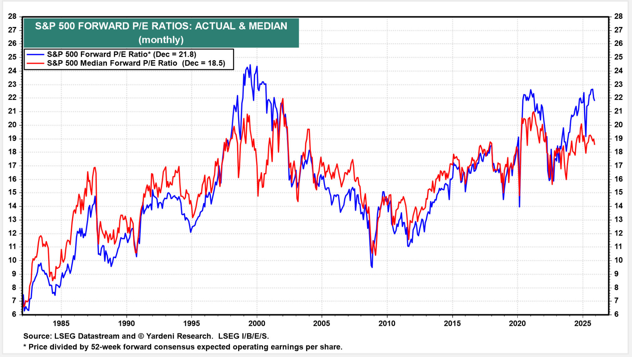 In Thursday’s options trading, there were 2,340 unusually active options, which included 1,396 calls and 944 puts. That’s a bullish indicator, which leads me to the subject of today’s commentary: valuations. They’re relatively pricey--the S&P 500 forward P/E ratio is 22.1x, according to Yardeni Research.