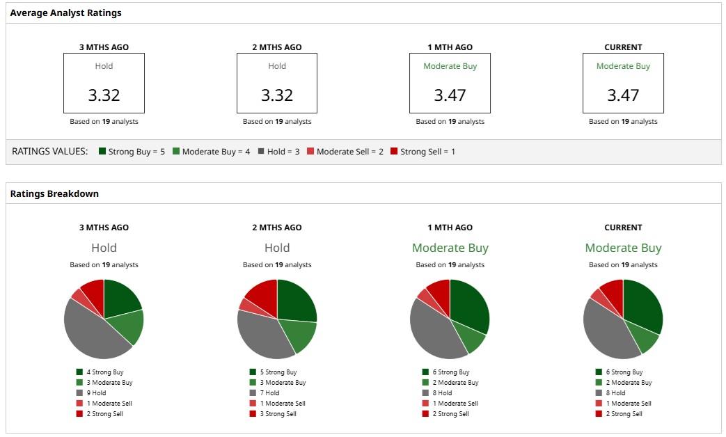 Based on the ratings of 19 analysts, SMCI stock is a consensus “Moderate Buy.” While six analysts assign a “Strong Buy” rating to SMCI, two analysts have assigned a “Moderate Buy” rating, and eight have a “Hold” rating. On the bearish side, one analyst has a “Moderate Sell” and two have a “Strong Sell” view.