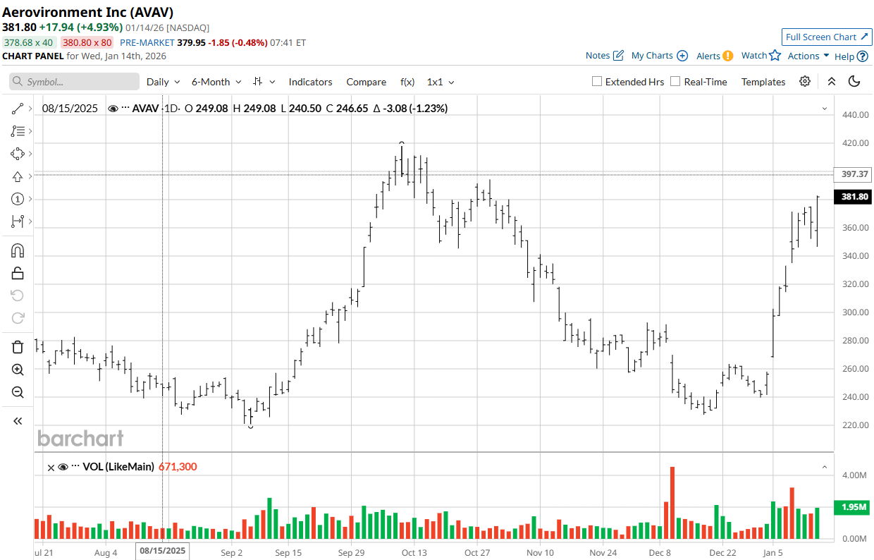 The crises in Venezuela and Iran appear to have played a role in lifting AVAV and KTOS. Between Jan. 2 – the day before the U.S. invasion of Venzuela which reportedly included the use of drones – and Jan. 14, AVAV stock jumped 49%, while KTOS stock rallied 53%. But the strike on Venezuela is likely already starting to fall off many investors’ radar, and there are signs that America may not strike Iran at all.