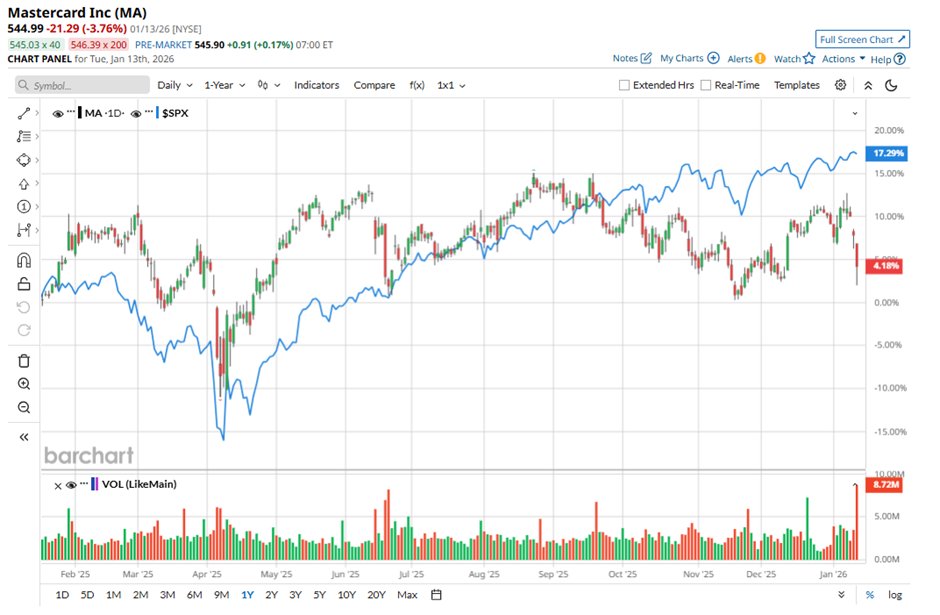 Global payments technology company Mastercard (MA) delivered a solid showing last year, holding up well despite market swings thanks to strong consumer spending, steady innovation, and resilient earnings. As digital payments continued to grow and transaction volumes remained healthy, the company proved it could navigate a choppy market while still delivering reliable performance. However, that momentum has hit a speed bump at the start of 2026.