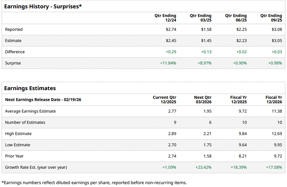 For fiscal 2025, analysts expect the company’s EPS to be $9.72, a rise of nearly 18.4% from $8.21 in fiscal 2024. Moreover, EPS is anticipated to grow 17.1% year over year (YoY) to $11.38 in fiscal 2026.