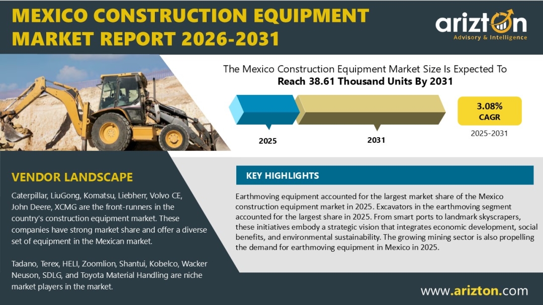 According to research by Arizton Advisory & Intelligence, the Mexico construction equipment market is transitioning into a steady, structurally supported growth phase. The market was estimated at 32.18 thousand units in 2025 and is expected to reach 38.61 thousand units by 2031, reflecting a moderate but resilient growth trajectory over the forecast period.