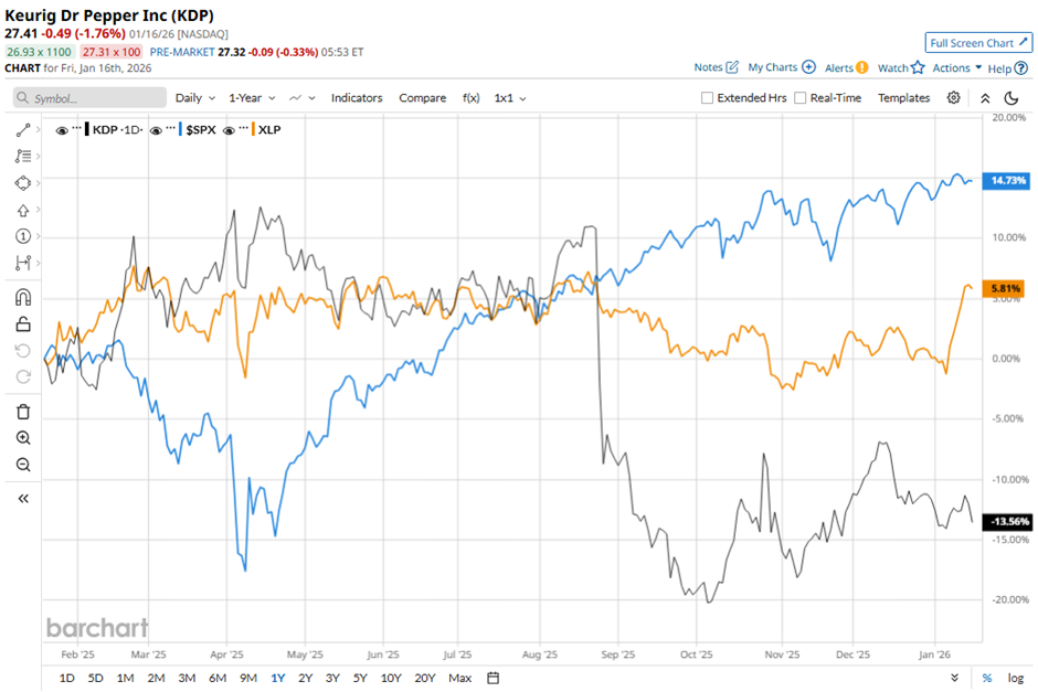 Shares of Keurig Dr Pepper have declined 12.4% over the past 52 weeks, lagging behind both the S&P 500 Index's ($SPX) 16.9% increase and the State Street Consumer Staples Select Sector SPDR ETF’s (XLP) 6.9% return over the same period.