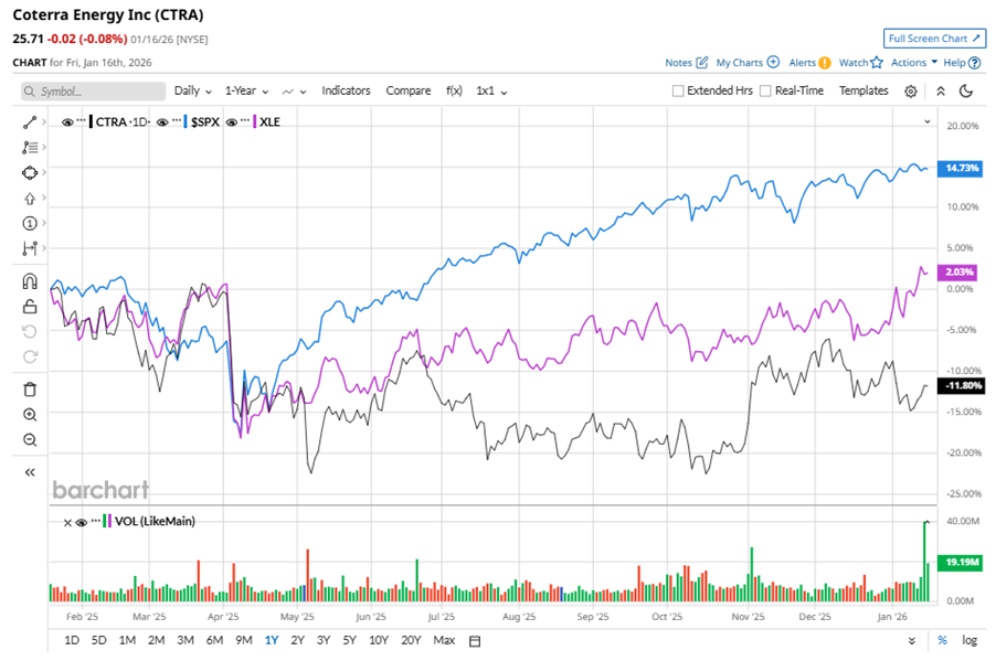 CTRA stock has underperformed the S&P 500 Index’s ($SPX) 16.9% gains over the past 52 weeks, with shares down 13.8% during this period. Similarly, it underperformed the Energy Select Sector SPDR Fund’s (XLE) 2.3% gains over the same time frame.