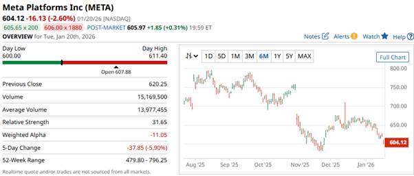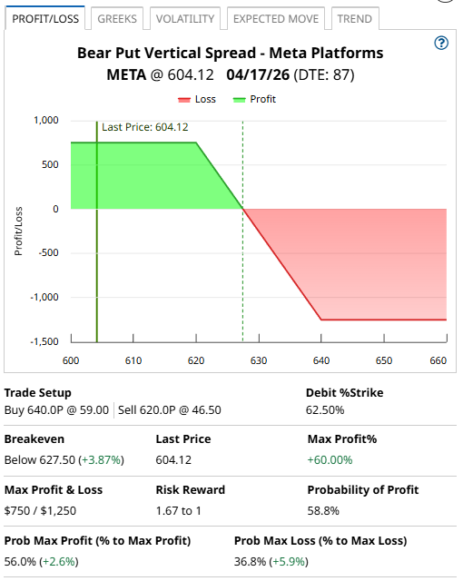 Let’s take a look at the first item in the table – a bear put spread on Meta Platforms (META).