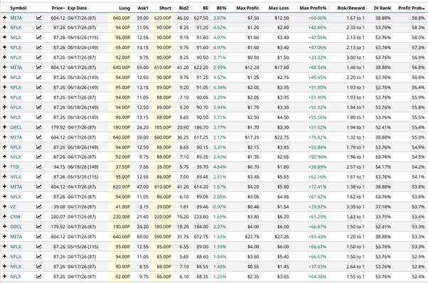 The first Oracle (ORCL) example is also using the April 17 expiry and involves buying the $190 strike put and selling the $185 strike put.
