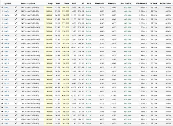 Some interesting trades here with impressive Max Profit Percentage.