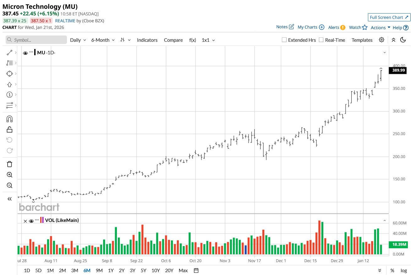 Further, as the company undertakes significant expansion amidst industry tailwinds, MU stock has surged by 238% in the last six months.
