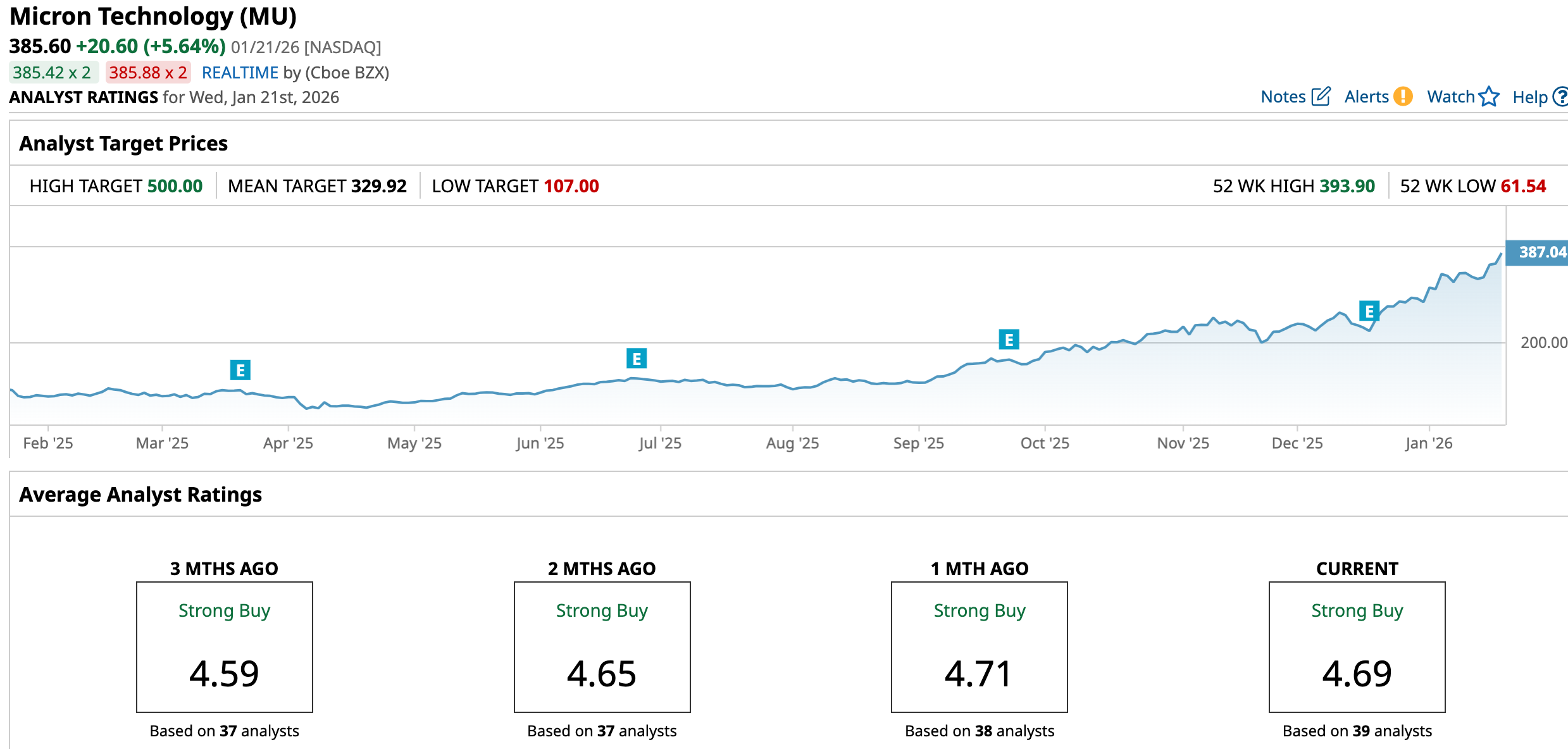 Notably, MU stock is already trading above its mean price target of $329.92, reflecting how quickly fundamentals have outrun earlier models. Even so, the Street-high target of $500 represents a gain of 29.7% from current levels.