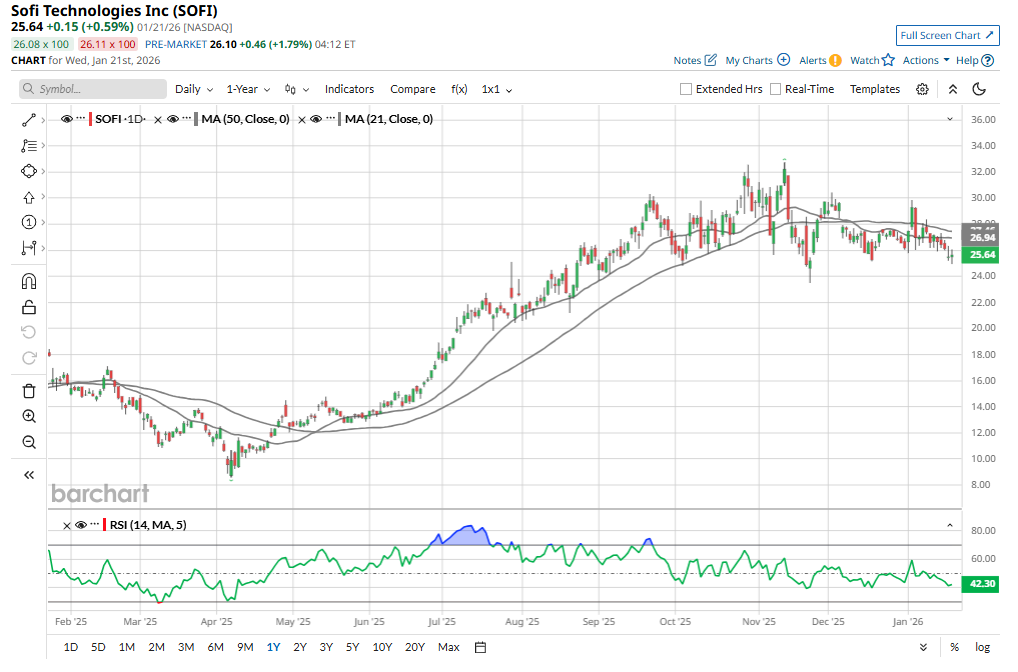 With valuation pressures easing after the pullback, the stock may appeal to investors willing to look beyond short-term uncertainty and focus on SoFi’s longer-term growth trajectory.
