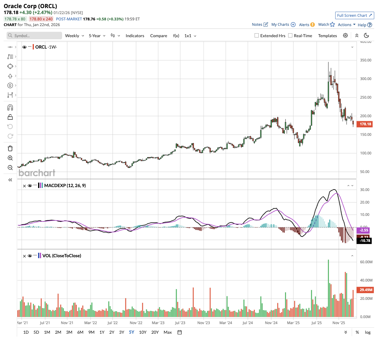 Oracle's stock has dropped almost 50% from its September peak amid concerns about the company’s massive capital expenditures. Between fiscal 2026 and fiscal 2028 (ending in May), Oracle is projected to report a cumulative free cash outflow of over $55 billion.