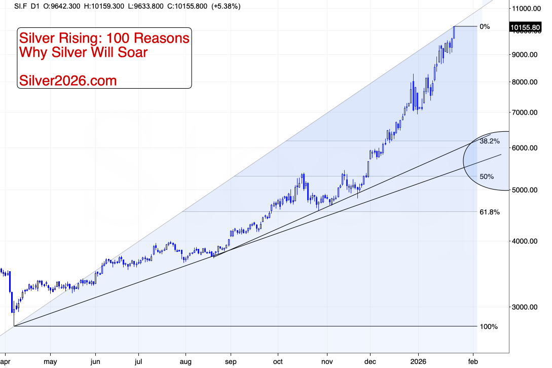 And yet – no market moves up or down without periodic corrections. Is one about to take place on the silver market? Will gold and mining stocks decline from here?