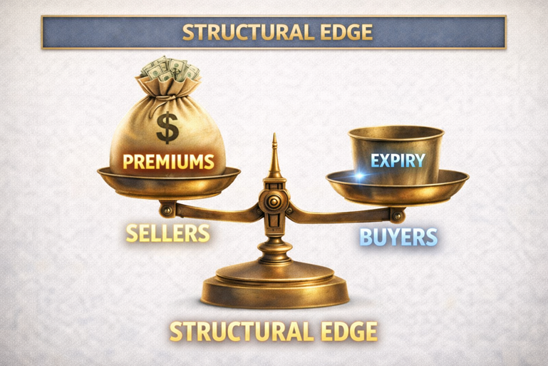 Options are not forecasts — they are insurance. Buyers pay for protection against adverse moves. Sellers absorb that risk in exchange for premium. Markets price this insurance so sellers are compensated for providing liquidity and absorbing uncertainty.