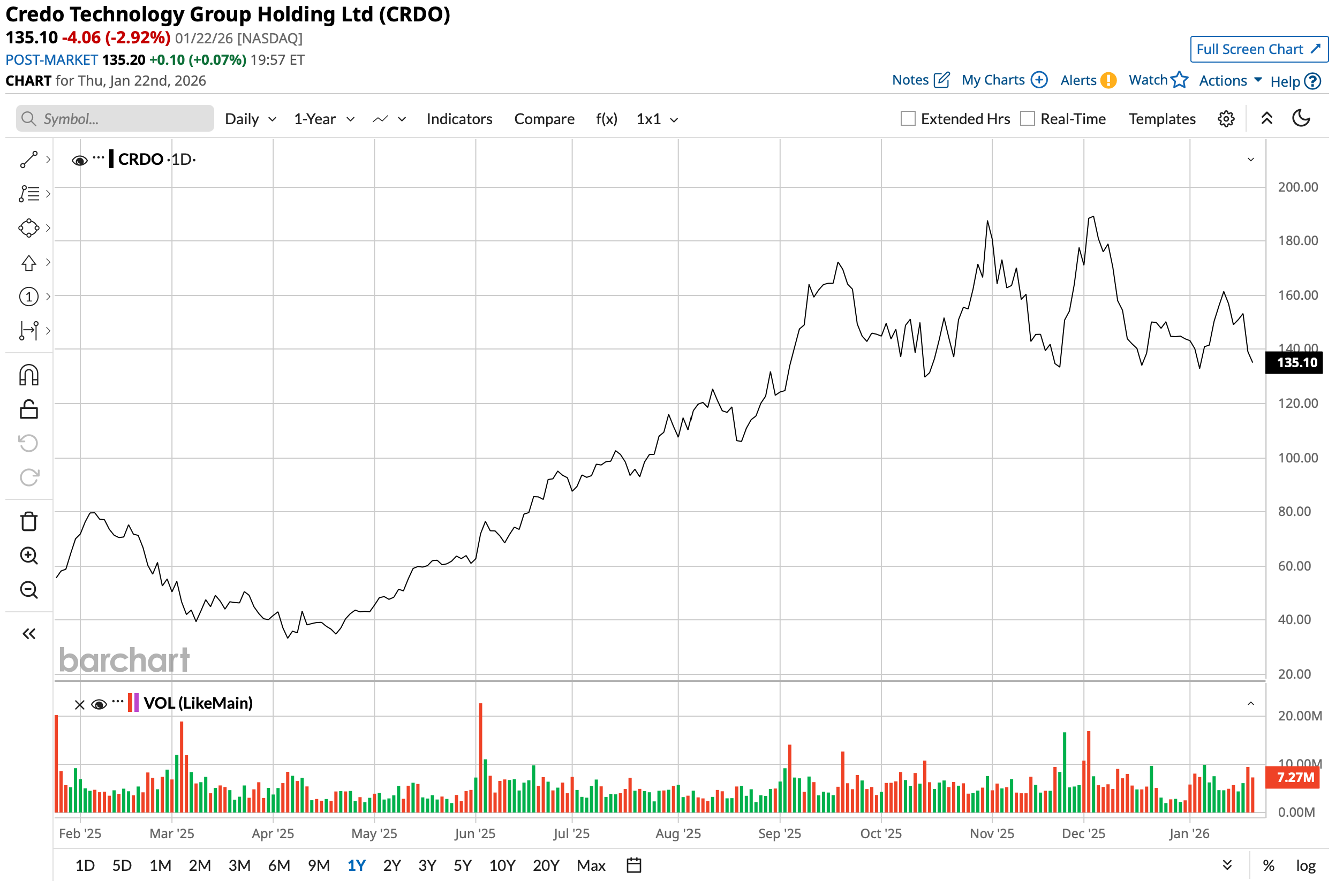 With a market cap of $25.1 billion, the CRDO stock has rallied by 61% over the past year.