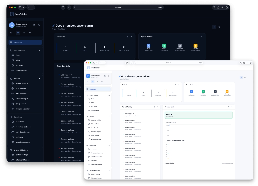 NovaBuilder is publicly available on GitHub and can be installed and explored locally. It is intended for developers, agencies, and organizations building long-lived internal tools and business systems.