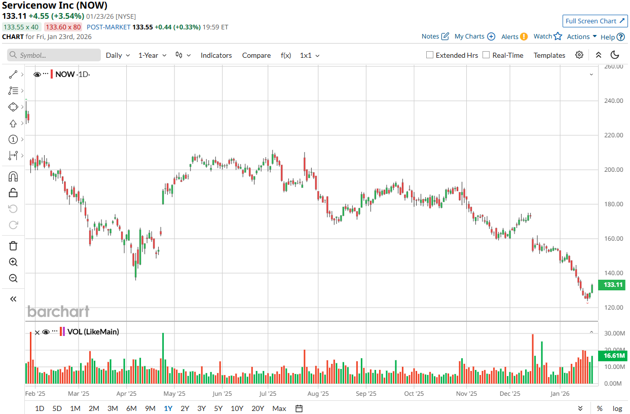 ServiceNow shares have been in a steep decline over the past few months as investors continue to worry about potential disruption from AI-focused competitors. The selloff intensified this month after Anthropic unveiled Claude Cowork, a tool built to tackle complex tasks such as coding, enterprise workflows, and advanced reasoning. Some analysts believe that some of ServiceNow’s offerings could be disrupted as AI models continue to advance.