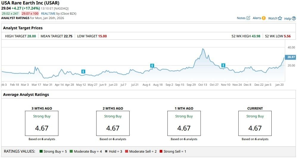 According to Barchart, the mean price target on USA Rare Earth stock currently sits at about $23, signaling potential downside of more than 20% from current levels.Â