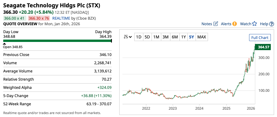And despite very robust performance in recent years, there are some indications that this recent rally we've seen in Seagate and other NAND and DRAM supplies could continue. Indeed, DRAM is where it's at in terms of the AI revolution (with NAND being typically used for slower or longer-duration tasks). Accordingly, as one of the largest suppliers of DRAM in the market, Seagate is one stock that could continue to outperform.
