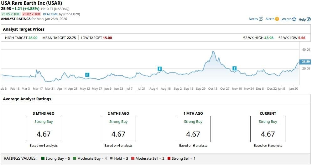 While the consensus rating on USA Rare Earth remains at “Strong Buy," the mean target of about $23 indicates potential downside of more than 10% from here.