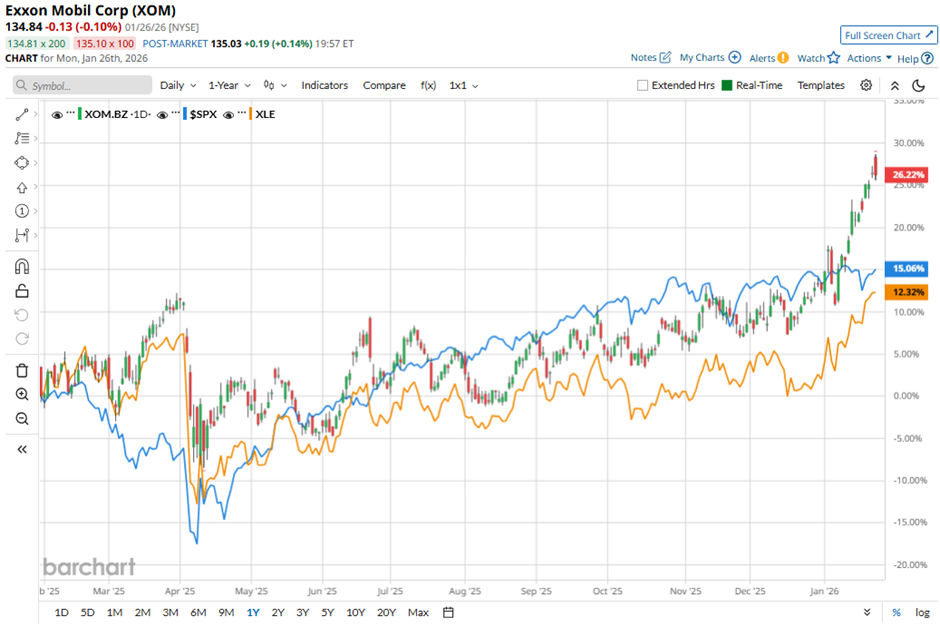 Shares of the Spring, Texas-based company have outperformed the broader market over the past 52 weeks. XOM stock has increased 24.1% over this time frame, while the broader S&P 500 Index ($SPX) has rallied 13.9%. Moreover, shares of Exxon Mobil are up 12.1% on a YTD basis, compared to SPX's 1.5% gain.