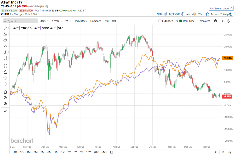 Moreover, the telecom giant stock has lagged behind the State Street Communication Services Select Sector SPDR ETF’s (XLC) 17.3% surge over the past 52 weeks.
