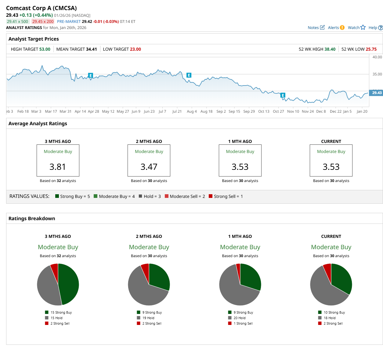 On Jan. 21, Bank of America Corporation (BAC) analyst Jessica Reif Ehrlich maintained a "Buy" rating on CMCSA and set a price target of $37, indicating a 25.7% potential upside from the current levels.