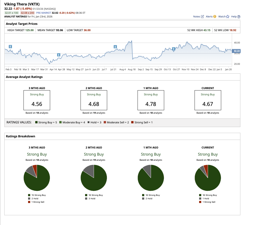 Viking does not yet have any approved products on the market. Like Celldex, its stock performance is dependent on the outcome of ongoing clinical trials and eventual regulatory approval. The markets Viking is targeting — obesity, metabolic disease, and liver problems — are massive and quickly expanding, with obesity and related conditions projected to create enormous demand for effective therapies. This is perhaps why analysts are so optimistic about VKTX stock's long-term prospects.