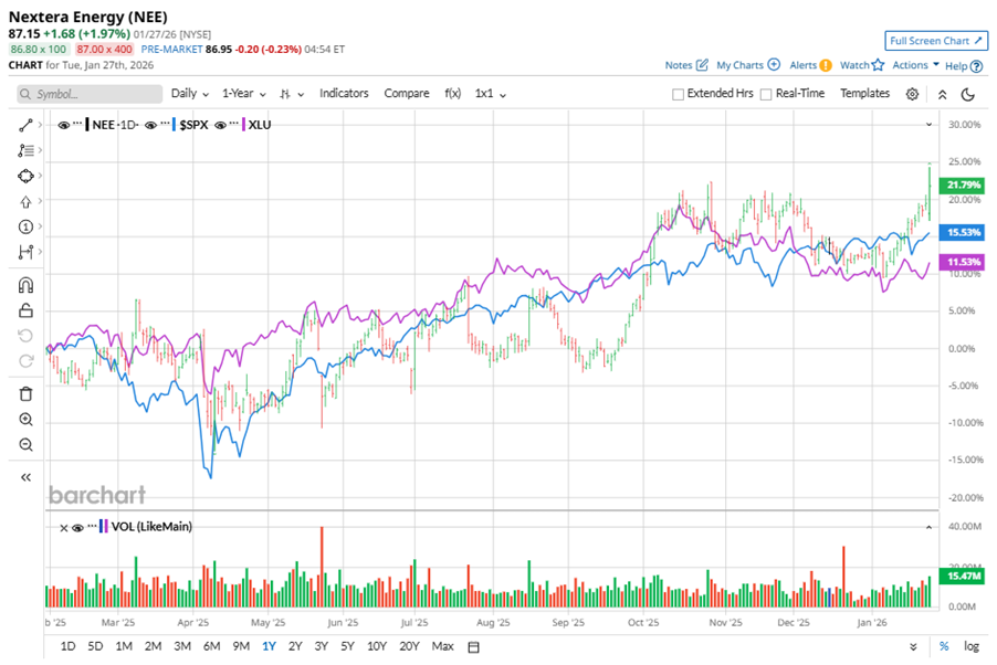 Shares of this energy giant have outperformed the broader market over the past year. NEE has gained 18% over this time frame, while the broader S&P 500 Index ($SPX) has rallied nearly 16.1%. In 2026, NEE stock is up 8.6%, surpassing the SPX’s 1.9% rise on a YTD basis.
