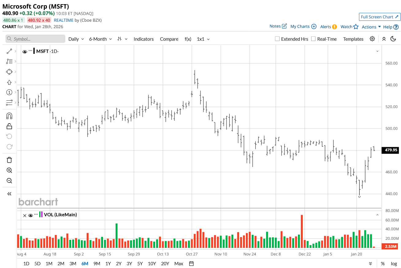 The last 52 weeks have been relatively volatile for Microsoft (MSFT) stock, with muted returns of 7.4%. Further, from highs of $555.45, there has been a meaningful correction, and MSFT stock currently trades at about $481.