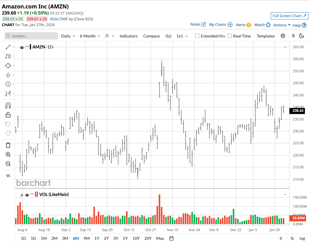 Amazon (AMZN) is a global tech company that has its tentacles in multiple industries, including retail, cloud computing, e-commerce, streaming, and AI. The company is headquartered in Seattle, Washington, with another corporate headquarters in Arlington, Virginia.