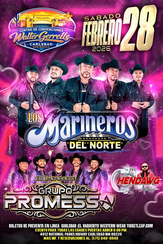 -- Carlsbad Live, LLC is excited to present a high-energy live concert event showcasing some of the most dynamic and beloved talents in regional Mexican and norteño music. On Saturday, February 28, 2026, the Walter Gerrells Convention Center in Carlsbad, New Mexico, will come alive with an unforgettable night of passionate performances, perfect for fans of all ages.