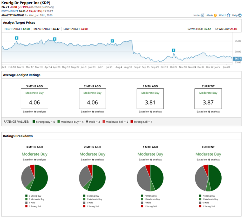 On Dec. 15, 2025, Piper Sandler raised its price target on Keurig Dr Pepper to $38 while maintaining an “Overweight” rating on the stock.