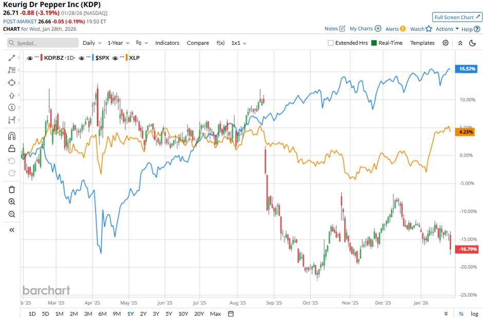 Narrowing the focus, shares of Keurig Dr Pepper have also lagged behind the State Street Consumer Staples Select Sector SPDR ETF’s (XLP) 4.5% return over the past 52 weeks.