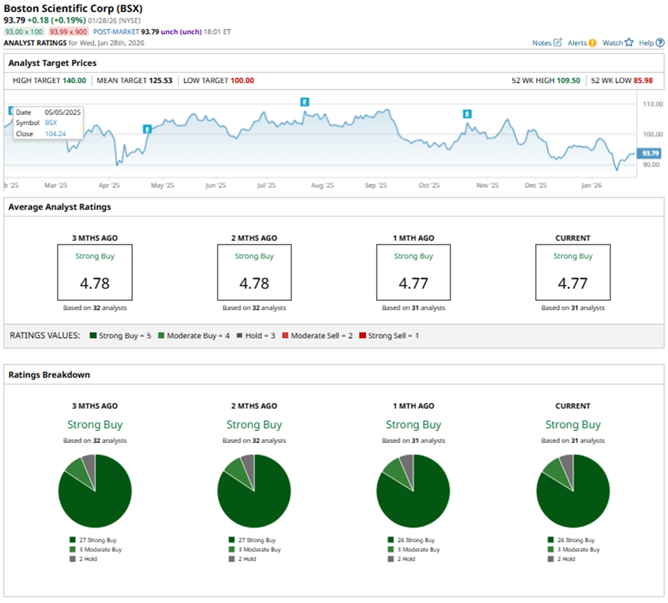 On Jan. 10, Bernstein analyst Lee Hambright maintained a “Buy” rating on Boston Scientific and set a price target of $130.