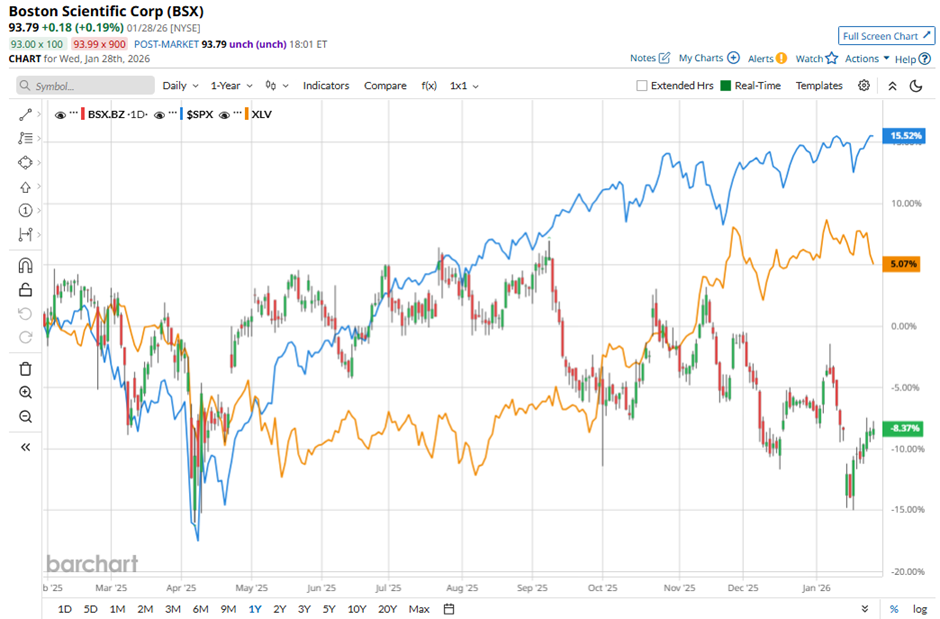 Shares of the Marlborough, Massachusetts-based company have underperformed the broader market over the past 52 weeks. BSX stock has decreased 8.3% over this time frame, while the broader S&P 500 Index ($SPX) has gained 15%. Moreover, shares of the company have declined 1.6% on a YTD basis, compared to SPX's 1.9% return.