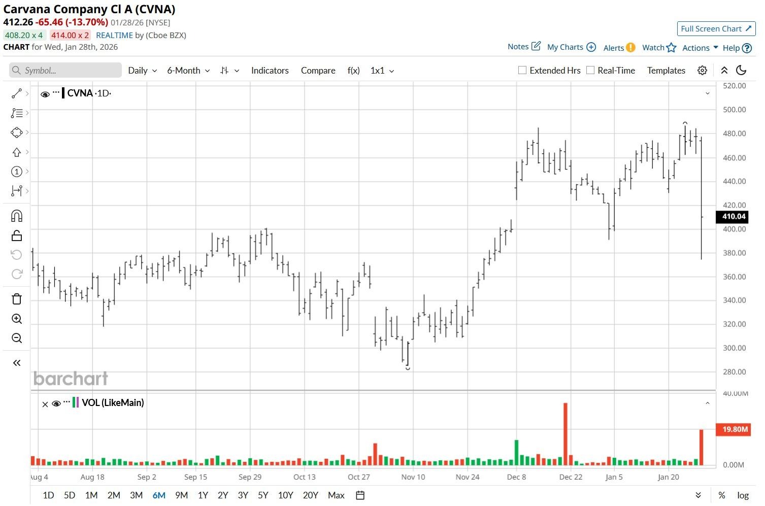 Carvana (CVNA) shares closed down more than 14% on Jan. 28 after Gotham City Research issued a short report against the online used car retailer.