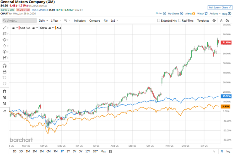 On Jan. 27, GM reported mixed results for the fourth-quarter of 2025. The company’s quarterly total revenue dropped 5.1% year-over-year (YOY) to $45.29 billion, missing the Street analysts’ estimate. However, its adjusted EPS for the quarter was $2.51, up 30.4% from the prior-year period and beating Wall Street analysts’ expectations. Moreover, GM’s new energy vehicle (NEV) sales in China reached nearly 1 million units in 2025.