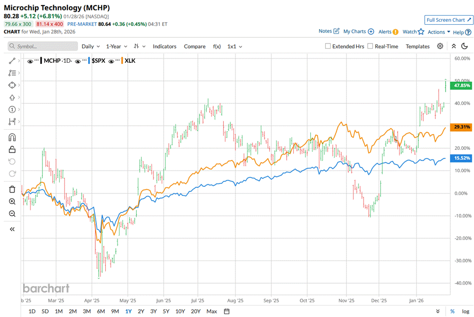 Shares of the semiconductor manufacturer have outperformed the broader market over the past year. MCHP stock has jumped 42.6% over the past 52 weeks and 26% on a year-to-date (YTD) basis. In comparison, the S&P 500 Index ($SPX) has returned 15% over the past year and 1.9% in 2026.
