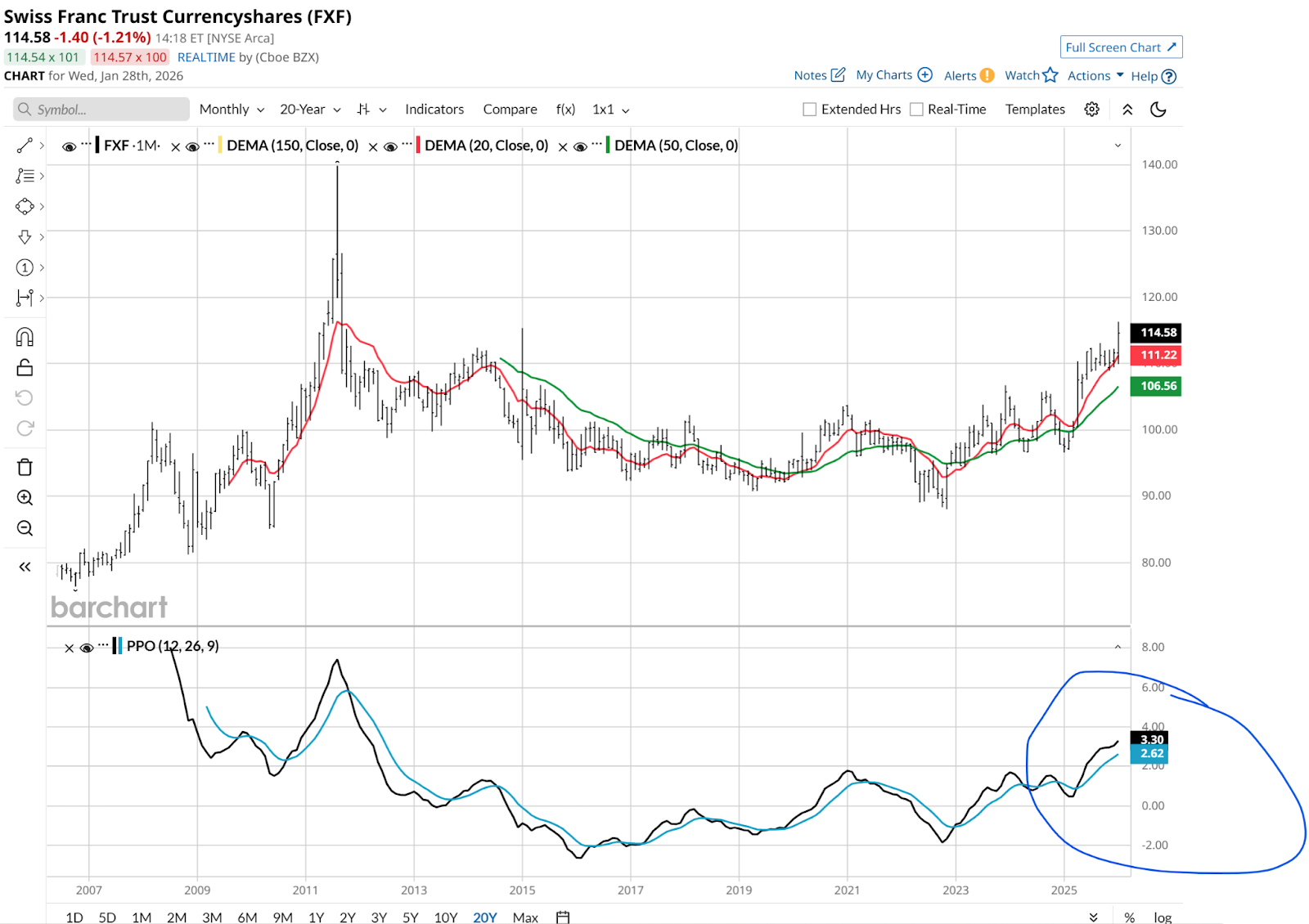Every few years or so, I come back to Swiss Franc Trust Currencyshares (FXF). And every time, I quickly remember why I returned to it.